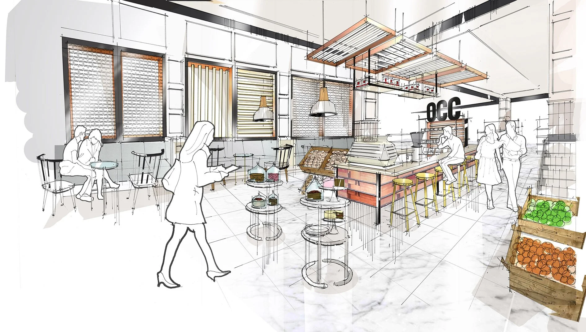 Aligned with the wider Fenwick shop floor, the scheme creates seamless sightlines and intuitive circulation, allowing shoppers to move effortlessly between retail and hospitality. The concept celebrates the food hall’s longstanding connection to the city and its proud community, delivering a timeless environment rooted in place and tradition.