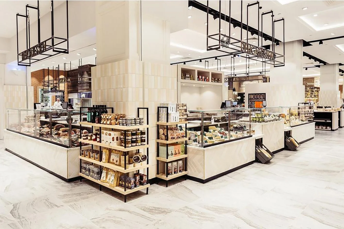 Material choices reinforce this narrative. Decorative tiling, coffered ceilings, and traditionally styled counters establish a classic framework, while contemporary detailing and lighting bring clarity, warmth, and performance for today’s trading demands. The result is a cohesive space that merges food retailing and hospitality to create a dynamic yet authentically traditional atmosphere.
